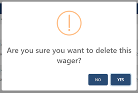 Clicking the delete option next to the wager will produce a pop up asking you to confirm the wager deletion. Once confirmed the wager will be deleted.